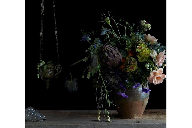 草花の華やかさ、空気感にインスピレーションを受けた作品が並びます。青磁や青白磁の落ちついた色味と、レリーフや銀彩など装飾とのコンビネーションが美しく、ご褒美時間に使いたくなる器たちです。