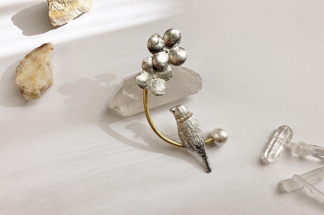 ピューター(錫合金)と真鍮などの金属や天然石で装身具を製作しています。身近な自然の儚さや四季のうつろいの美しさを、ブローチや耳飾りなど日常に溶け込んで楽しめるアイテムとしてお届けします。