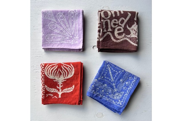リネン生地のクラフトバンダナを、型紙づくりから一つ一つ手作業で製作しています。毎日が少し楽しくなる模様と、育てるように使うほど感じる風合いの変化を、ぜひ実際に手に取ってご覧ください。