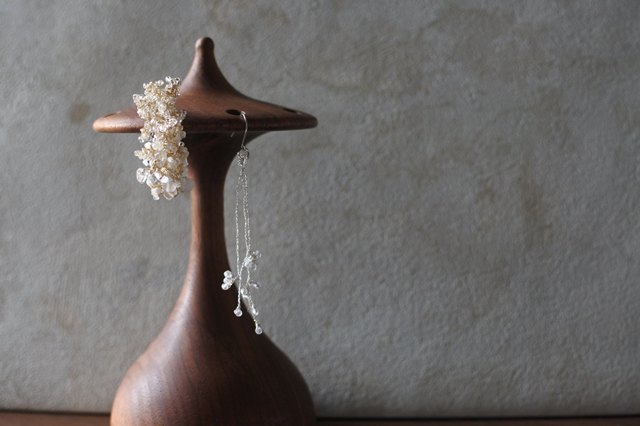 静岡県伊豆市で“日々に祈りを”をテーマに暮らしに寄り添うお守りのような装身具を製作。天然石やビンテージビーズを糸で一つ一つ編み込み、それぞれの素材の個性を大切に優しく揺れる耳飾りが並びます。