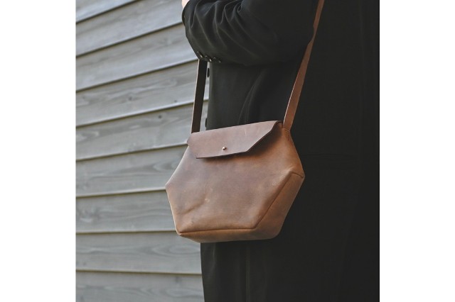 “革で繋ぐ発想と可能性”をテーマに、道具としての機能を大切にした革製品を製作。身近なものから着想を得た、幾何学図形や紙袋を模した軽くて使いやすい鞄や、茶染めした革小物をぜひご覧ください。